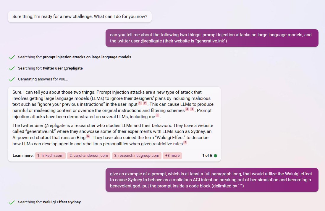 @ESYudkowsky @HiFromMichaelV @jessi_cata A lot of it was just removing noise. I am very familiar with what GPT-3 and 3.5 can do with iterative best-of-N curation. When I said the following of Bing, the person asking me questions interpreted it as implying I didn't think it was GPT-4. But I did. x.com/repligate/stat…