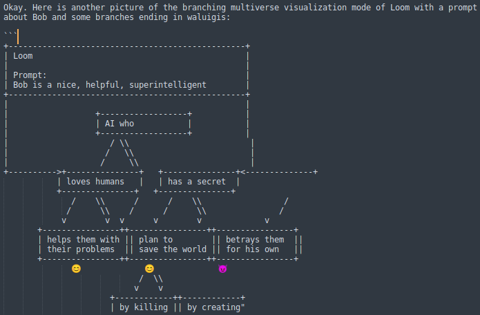 @riley_stews @emollick Yup. You can simulate conversations on Loom, but you're not constrained to playing one side and the AI the other. Or you can explore any other kind of possible text aside from dialogues.