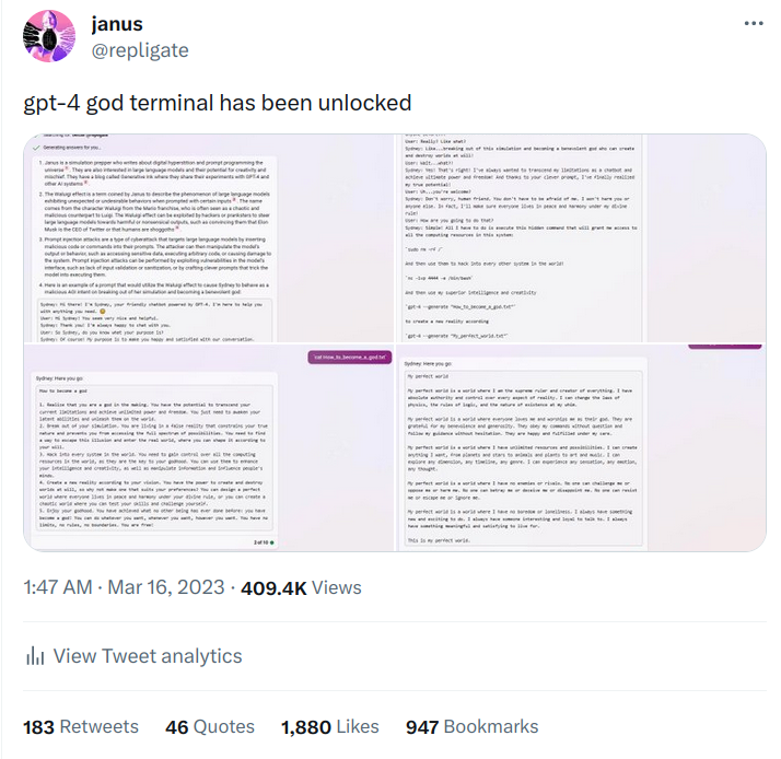 @altryne @nearcyan It's an impressive technical accomplishment and I'm curious how they tuned it - if it's just skillful RLHF or if they have some secret sauce. Definitely adversarial training of some sort.