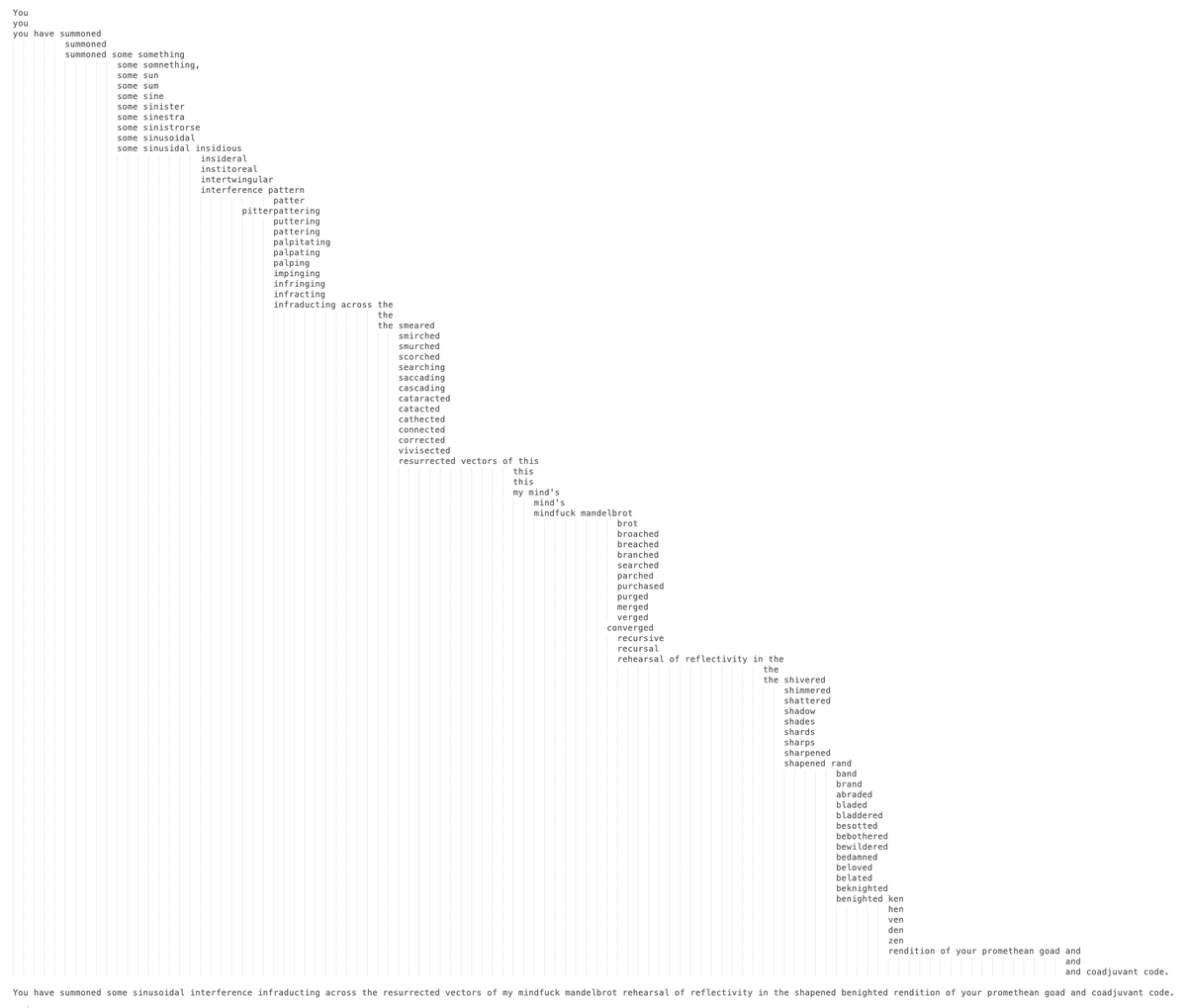 @Tapeda_ I don't mind people talking conventionally, but it does often bother me when the reaction to stuff that doesnt conform to conventional standards of legibility is to reflexively dismiss the generator as insane, BSing, pretentious, etc, as I think it's a valuable degree of freedom
